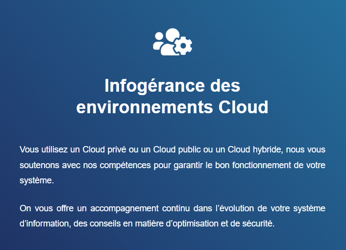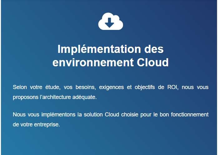 Ayant une maîtrise complète du Cloud Computing, nous vous guiderons dans votre processus de migration vers le modèle et le service Cloud les plus adéquats. Tunisian Cloud se positionne en tant que Cloud Advisor,Cloud Builder,Cloud Application Provider et Cloud Auditor.